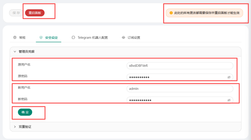 如果仍然无法访问面板,请检查本地是否启用了科学上网或 VPN,关闭相关代理后再次尝试访问。
