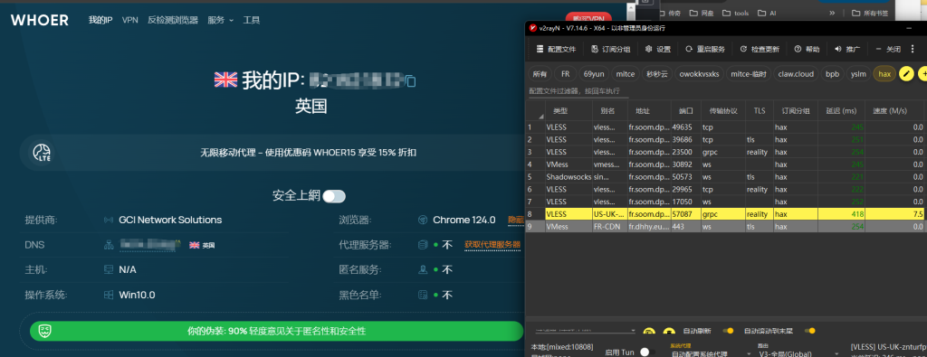 whoer 查看 ip 实测,VPS 是 IPv6 节点,但是显示的是 IPv4